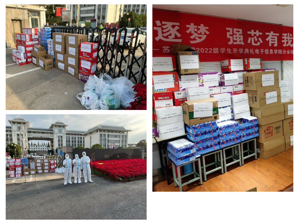 除了公司捐赠的一批物资以外,公司的苏大校友们得知母校正处于防疫关键时期,立刻自发募集资金、筹备物资,于10月16日送至苏州大学。本批物资包含医用外科口罩10,000个以及饮料1,620瓶。校友们希望以此为母校献上绵薄之力,以拳拳赤子之情传递对母校的感恩与牵挂。