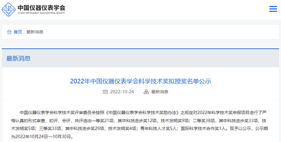 中国仪器仪表学会科学技术奖是经国家科技部批准,在国家科技奖励主管部门注册,经国家科学技术奖励工作办公室颁证,由中国仪器仪表学会设立的面向全国仪器仪表领域的综合性奖项。