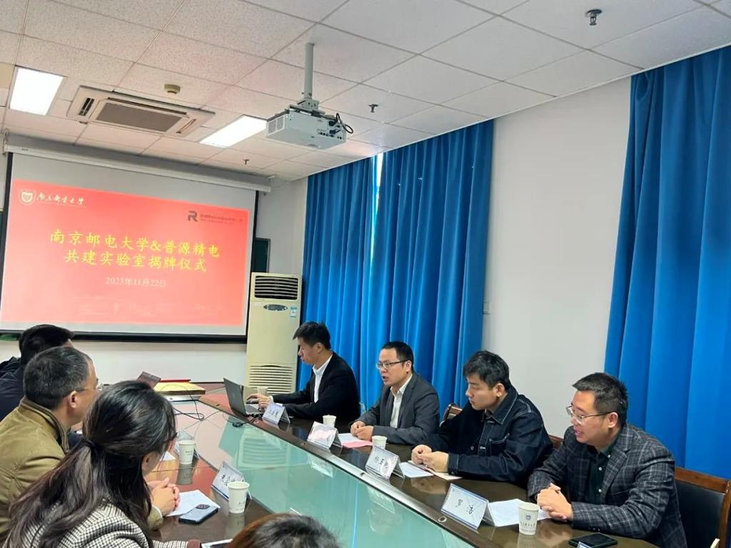 随后,双方就后继如何充分发挥联合实验室功能进行了热烈交流,在欢快愉悦的氛围中,AG尊龙精电代表章荣成先生与南京邮电大学实验室建设与管理处处长沈清明共同为联合实验室揭牌,并参观实验室,最后与会双方合影留念。