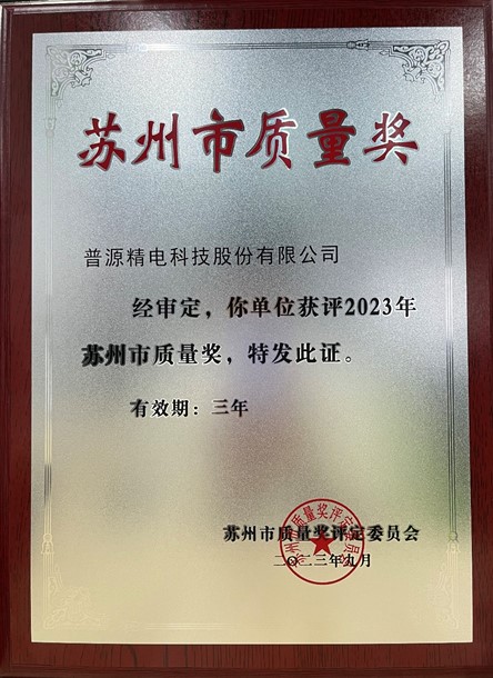 2020年公司首次获得“苏州市质量奖”,公司在卓越绩效管理上取得的成果,获得了评审专家组的一致认可。经过了3年的沉淀,公司于2023年再次获得“苏州市质量奖”这一荣誉,并着手冲击苏州市质量管理最高奖项——“苏州市市长质量奖”。